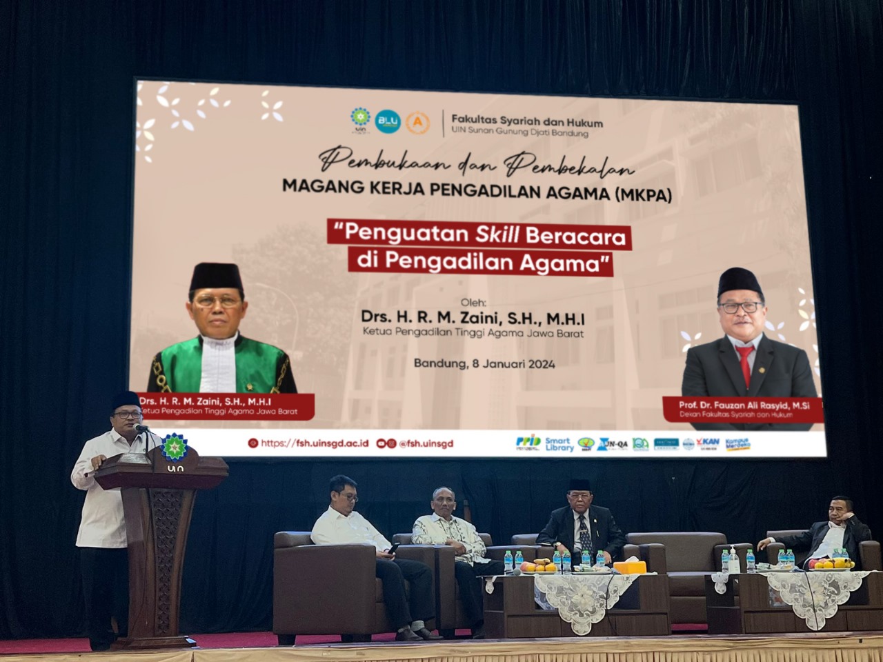 Dekan FSH, Prof. Dr. Fauzan Ali Rasyid menyampaikan untuk pelaksanaan program MBKM di Fakultas Syariah dan Hukum ini dilakukan dengan model MKPA (Magang Kerja Pengadilan Agama) yang dilaksanakan secara serentak di 26 Pengadilan Agama yang berada di wilayah Jawa Barat dan 5 PA di wilayah Banten.
