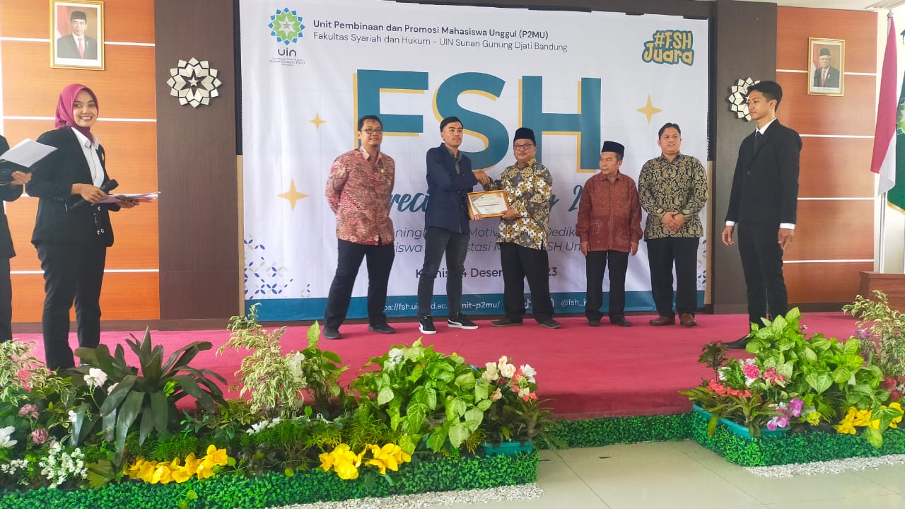 (FSH.UINSGD.AC.ID) — Sebanyak 63 mahasiswa berprestasi di lingkungan Fakultas Syariah dan Hukum (FSH UIN) Sunan Gunung Djati Bandung mendapatkan apresiasi dari Dekan FSH, Prof. Dr. Fauzan Ali Rasyid, MSi, di Aula FSH, Kamis (14/12/2023).