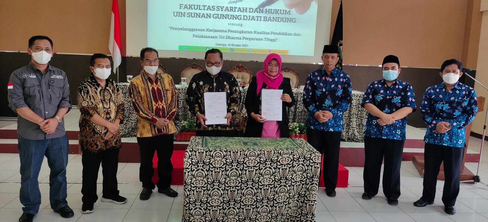 Dalam rangka menerapkan Merdeka Belajar Kampus Merdeka (MBKM) jajaran pimpinan Fakultas Syariah dan Hukum (FSH) UIN Sunan Gunung Djati Bandung melakukan Penandatanganan Memorandum of Agreement (MoA) dan Perjanjian Kerjasama (PKS) dengan Fakultas Syariah Insitut Agama Islam Negeri Salatiga di ruang Dekanat, Jumat (15/10/2021).