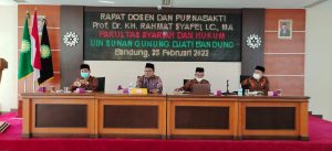 Jelang perkuliahan semester genap tahun akademik 2021/2022, Fakultas Syariah dan Hukum (FSH) UIN Sunan Gunung Djati Bandung menyelenggarakan kegiatan rapat dosen secara hybrid, Rabu (23/02/2022).