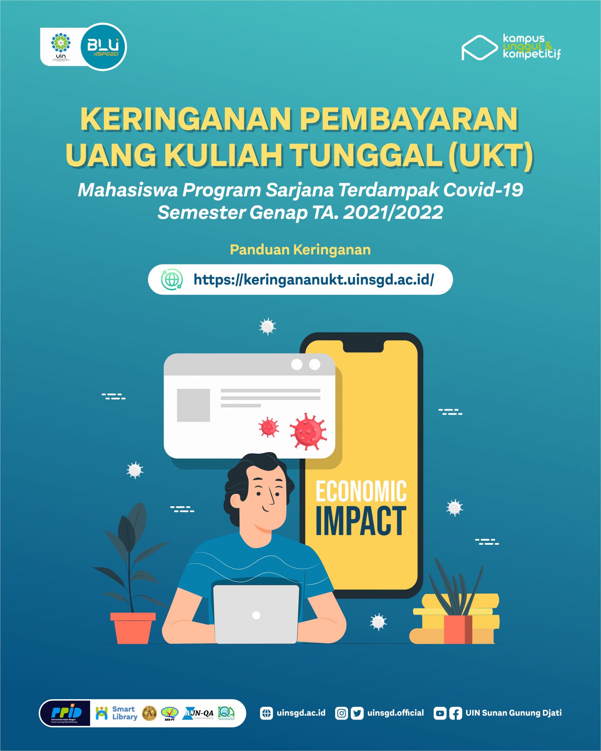 Untuk mengetahui Keputusan Rektor UIN Sunan Gunung Djati Bandung dan Surat Edaran tentang Pedoman Keringanan Uang Kuliah Tunggal (UKT) Semester Genap Tahun Akademik 2021/2022 dapat diunduh pada laman ini