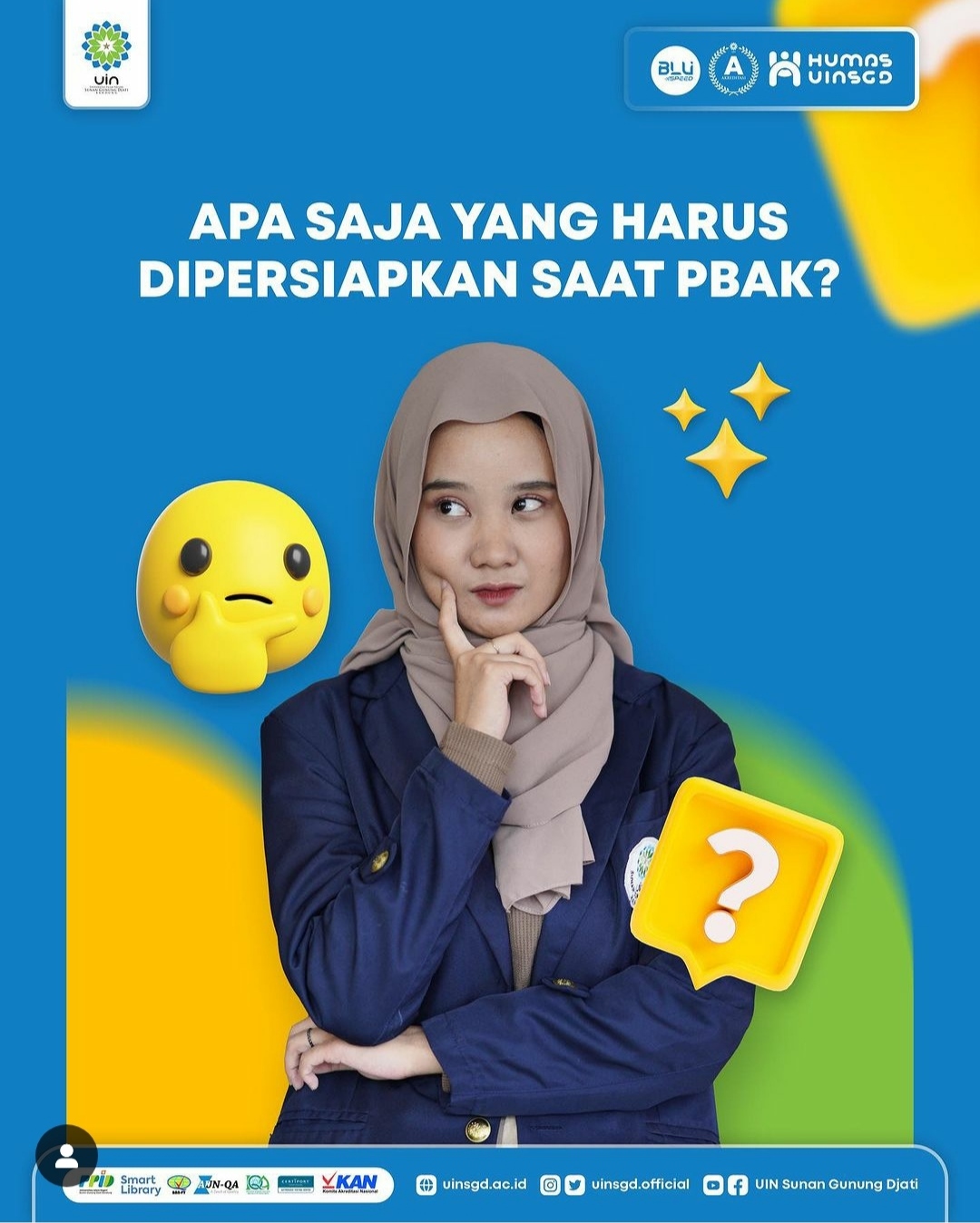 Pengenalan Budaya Akademik dan Kemahasiswaan (PBAK) UIN Sunan Gunung Djati Bandung Tahun 2023 akan dilaksanakan di beberapa lokasi. Simak jadwal dan lokasi pelaksanaannya berikut ini ya!