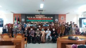 Pelepasan Prof Rahmat langsung dipimpin pejabat di lingkungan Fakultas Syariah dan Hukum (FSH) secara hybrid, Rabu (23/02/2022).