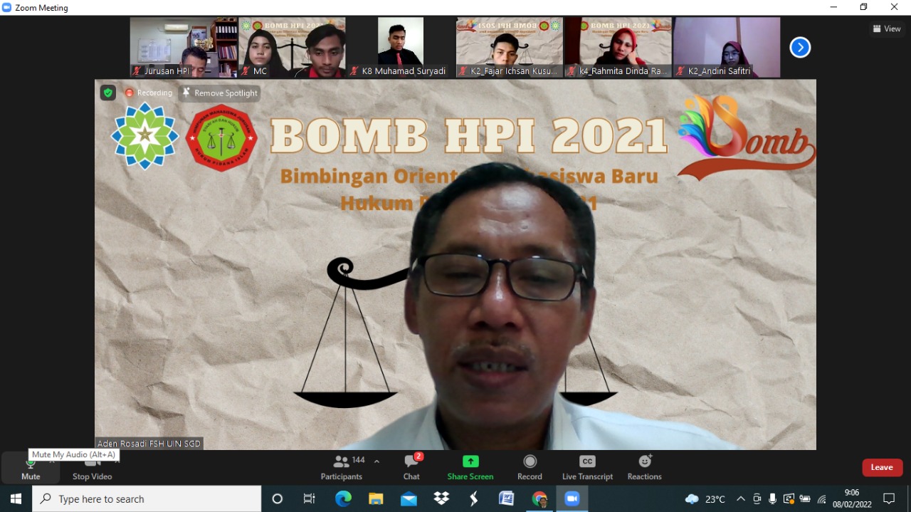 (BOMB) 2021 Himpunan Mahasiswa Jurusan Hukum Pidana Islam yang dilakukan secara virtual melalui aplikasi zoom meeting, Selasa (8/2/2022).
